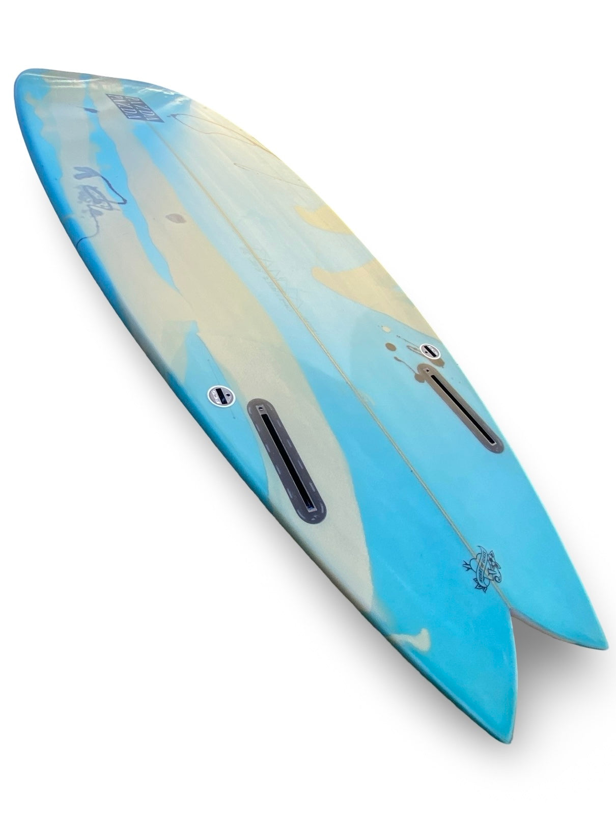 A performance fish shape designed to be ridden from 6'0-7'0. This design came about from wanting to ride some longer boards and still keep some performance built into them and also wanting a shape bigger guys could also use and rip on.